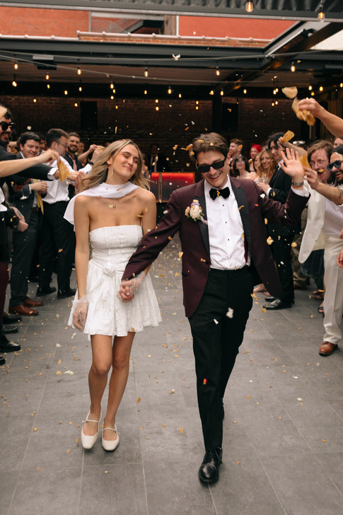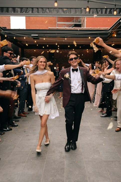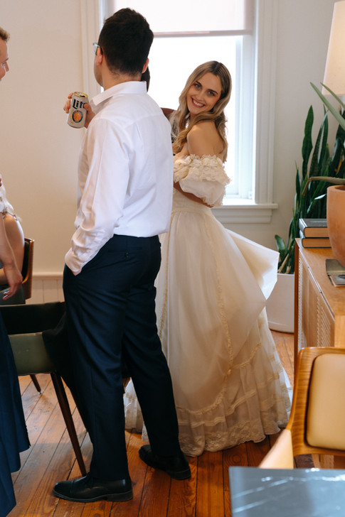 Gradey and Sophie got married at the Italian Gardens at Maymont Park, then headed to Common House Richmond to party. Sophie wore a vintage bridal gown from the 70s for her ceremony (from Juniper Lane), a revolve mini dress for the reception, and dolce vita shoes. The ceremony was adorned with pastel spring florals by Wild Flora Event Co. As Sophie walked down the aisle, Christina Thomas (RVA Harpist) played an ethereal Lana Del Rey song on her harp. Common House provided a delicious family style dinner and the cutest heart shaped wedding cake with antique swan cake toppers. DJ Seth Casena kept the party going through the night and we wrapped up with a flower petal reception send off.